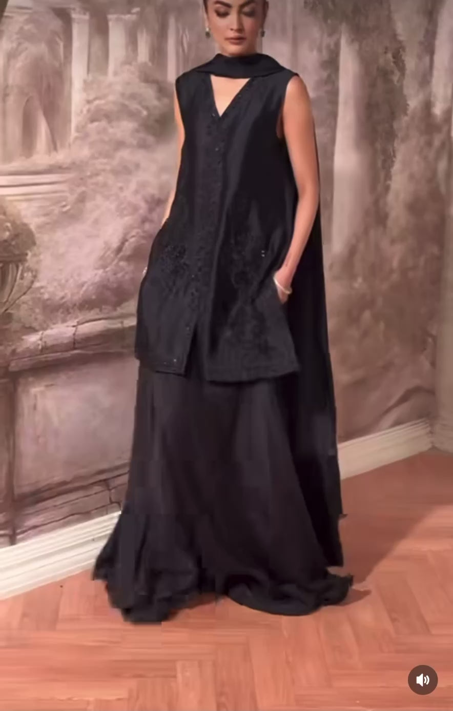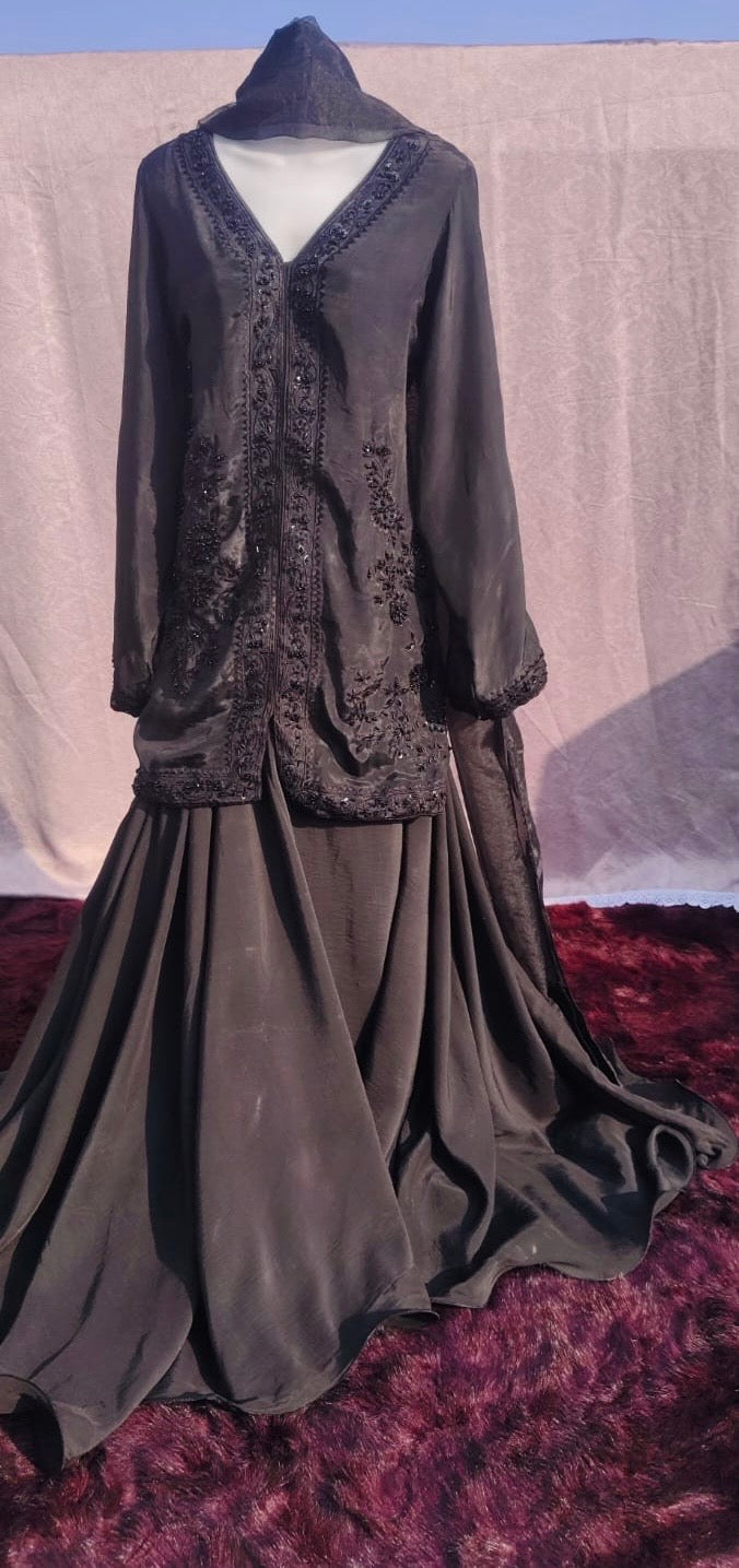 Embellishment: Resham thread work with highlight of pearls, sequins, crystals and katana all over.