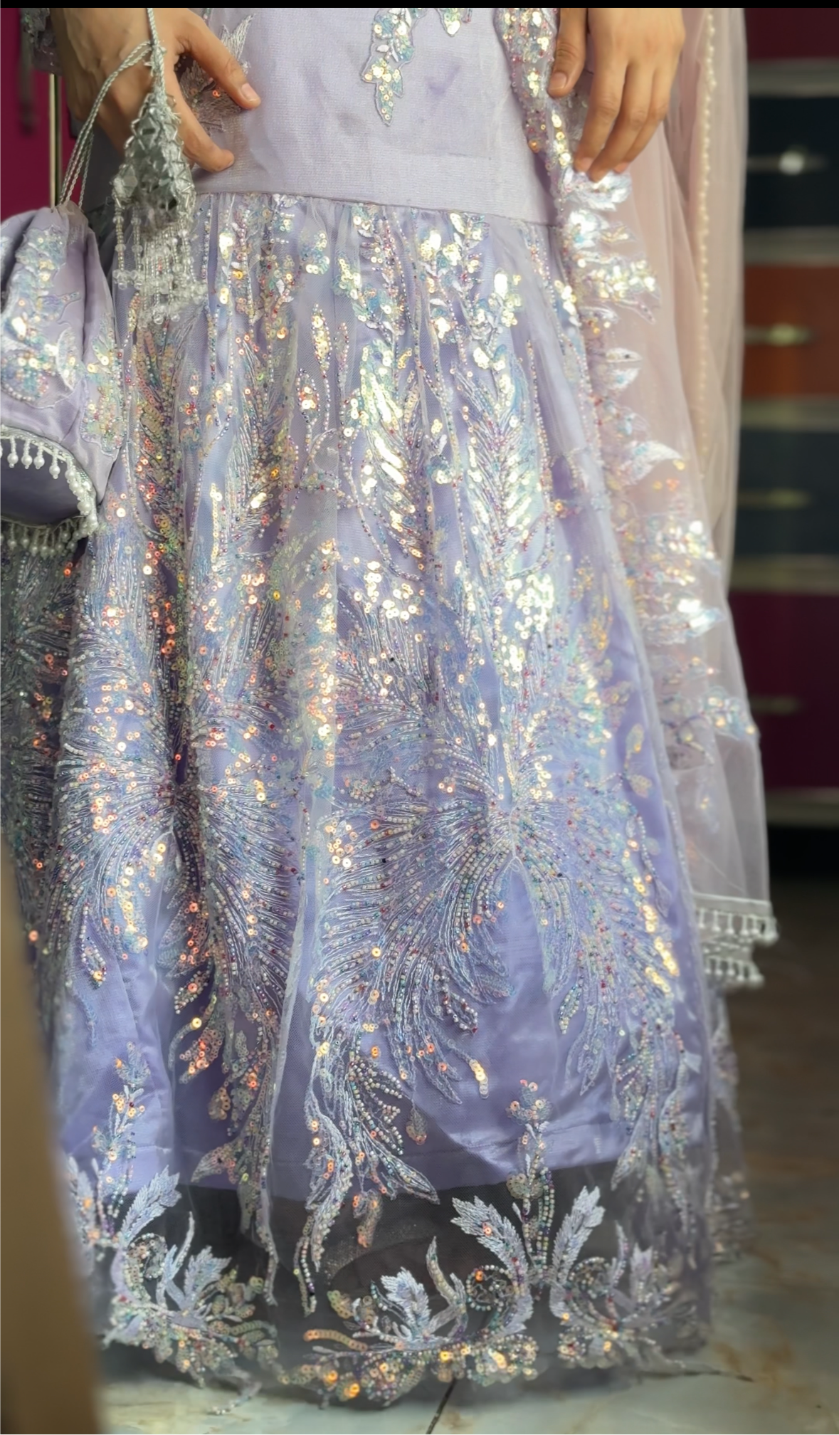 Indulge in the magic of our breathtaking lilac mermaid dress, designed to make you shine with every step.
