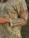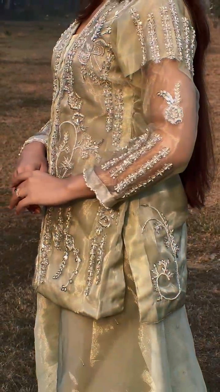 Intricate heandwork of sequin, katdaana and dabka grace this outfit. This dress is perfect for fashion-forward celebrations.