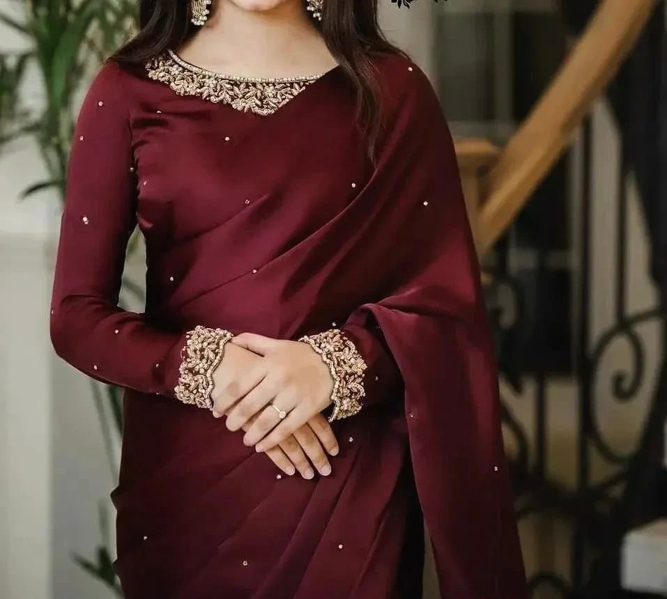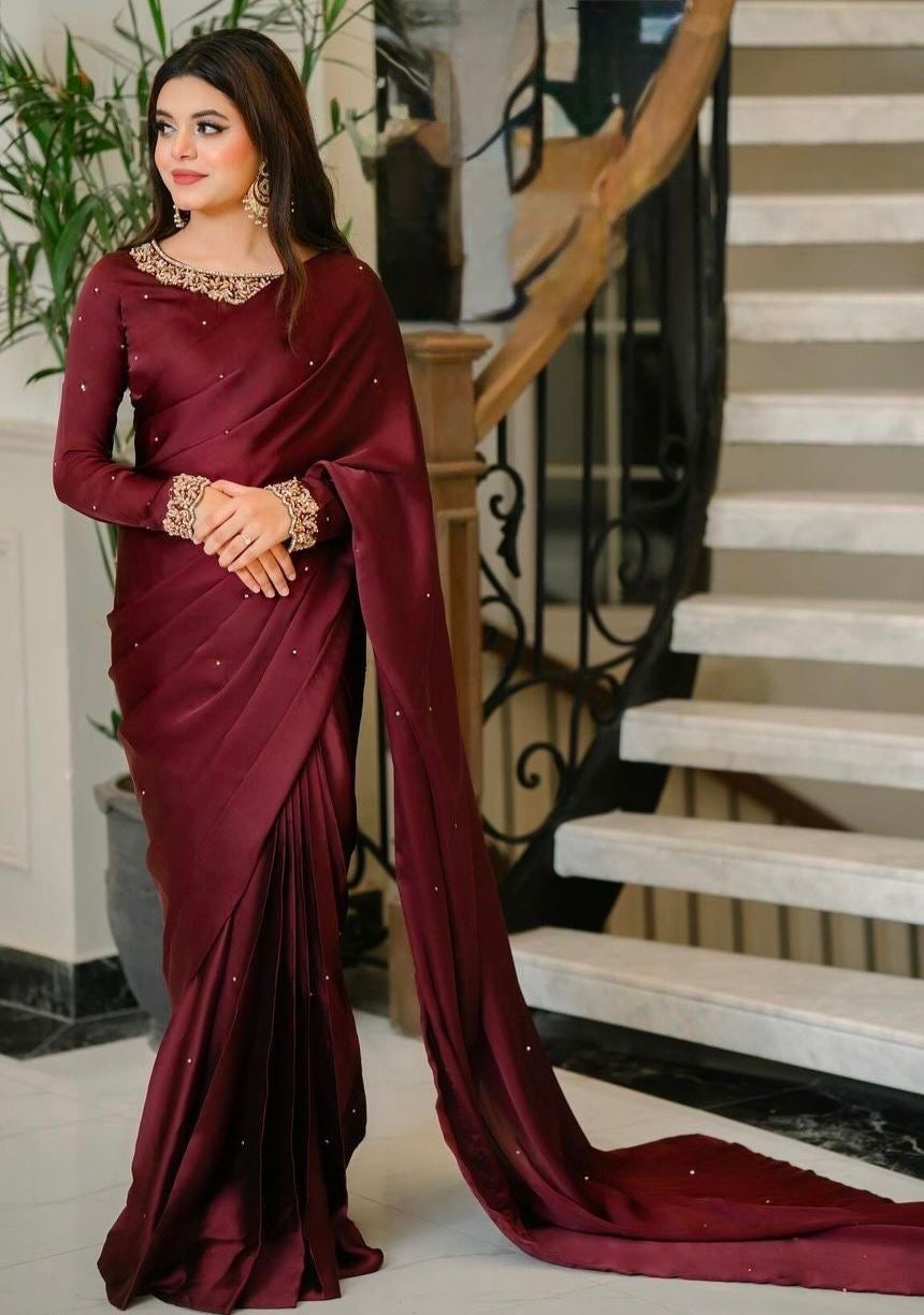 💫 Grace in Every Fold – Custom Mehroon Saree 💫