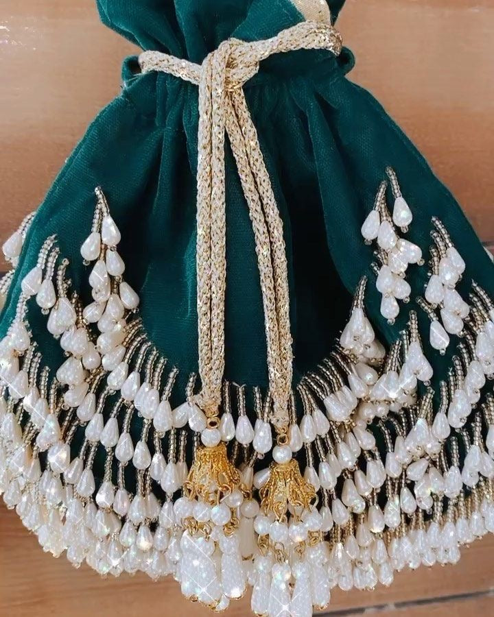 "Elevate your style with our customizable velvet potli, available in a range of colors to match your unique taste. Perfect for adding a touch of elegance to any outfit."