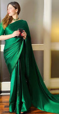 Drape yourself in timeless elegance with this emerald green silk saree, featuring a smooth, lustrous finish that flows beautifully with every step. Perfectly paired with minimal accessories, it’s a statement of grace and sophistication for any special occasion. 💚✨