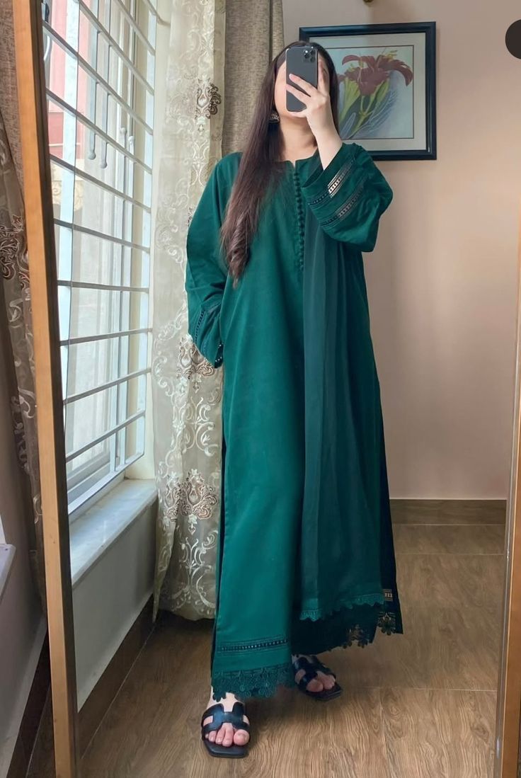 This beautiful lawn long dress is beautifully graced with laces for a chic look. 😍