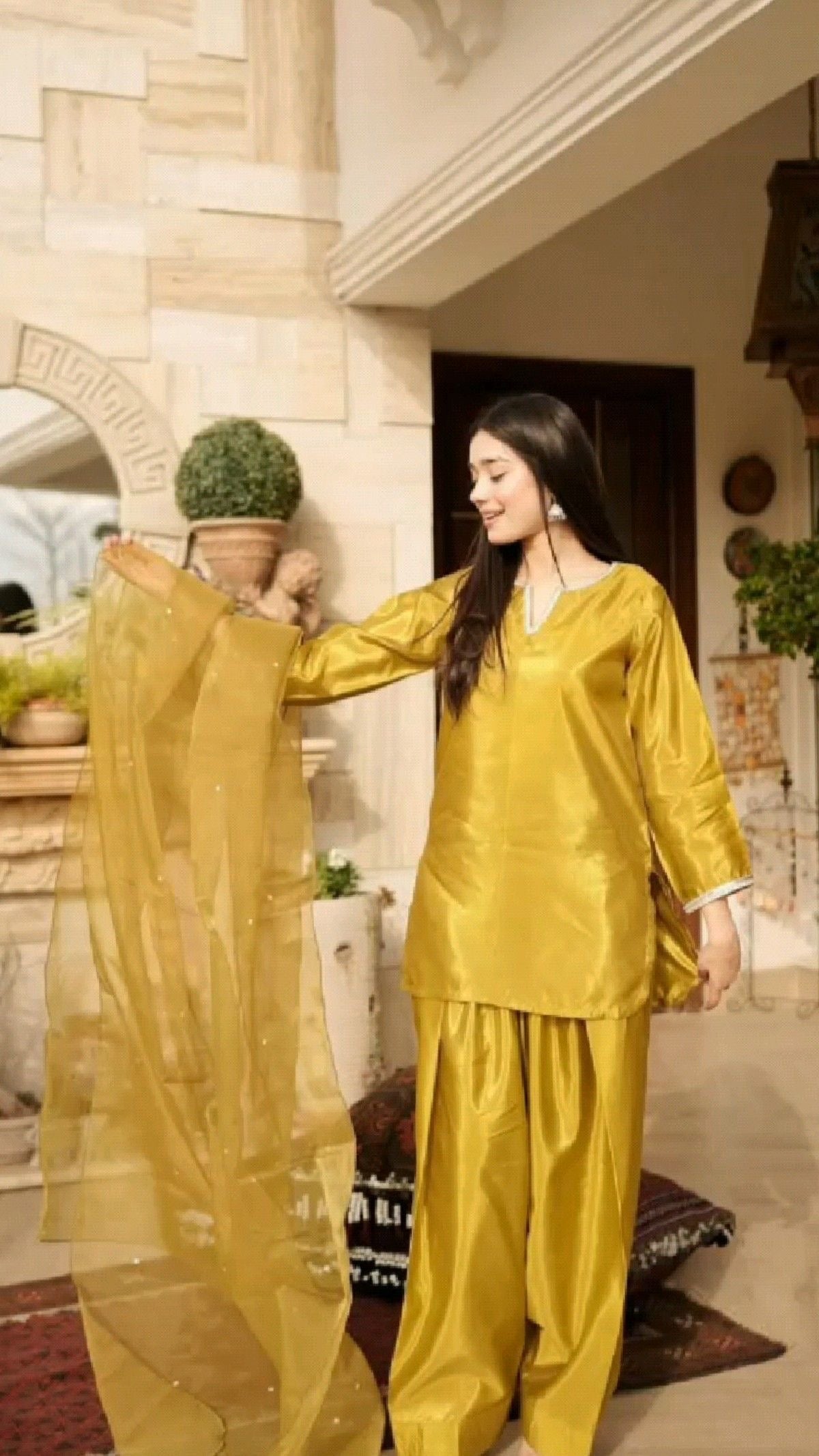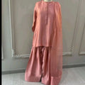 Grace meets tradition in this silk farshi shalwar with organza dupatta, flowing with effortless elegance and a regal silhouette. A timeless statement for festive and formal occasions, crafted to move beautifully with every step.