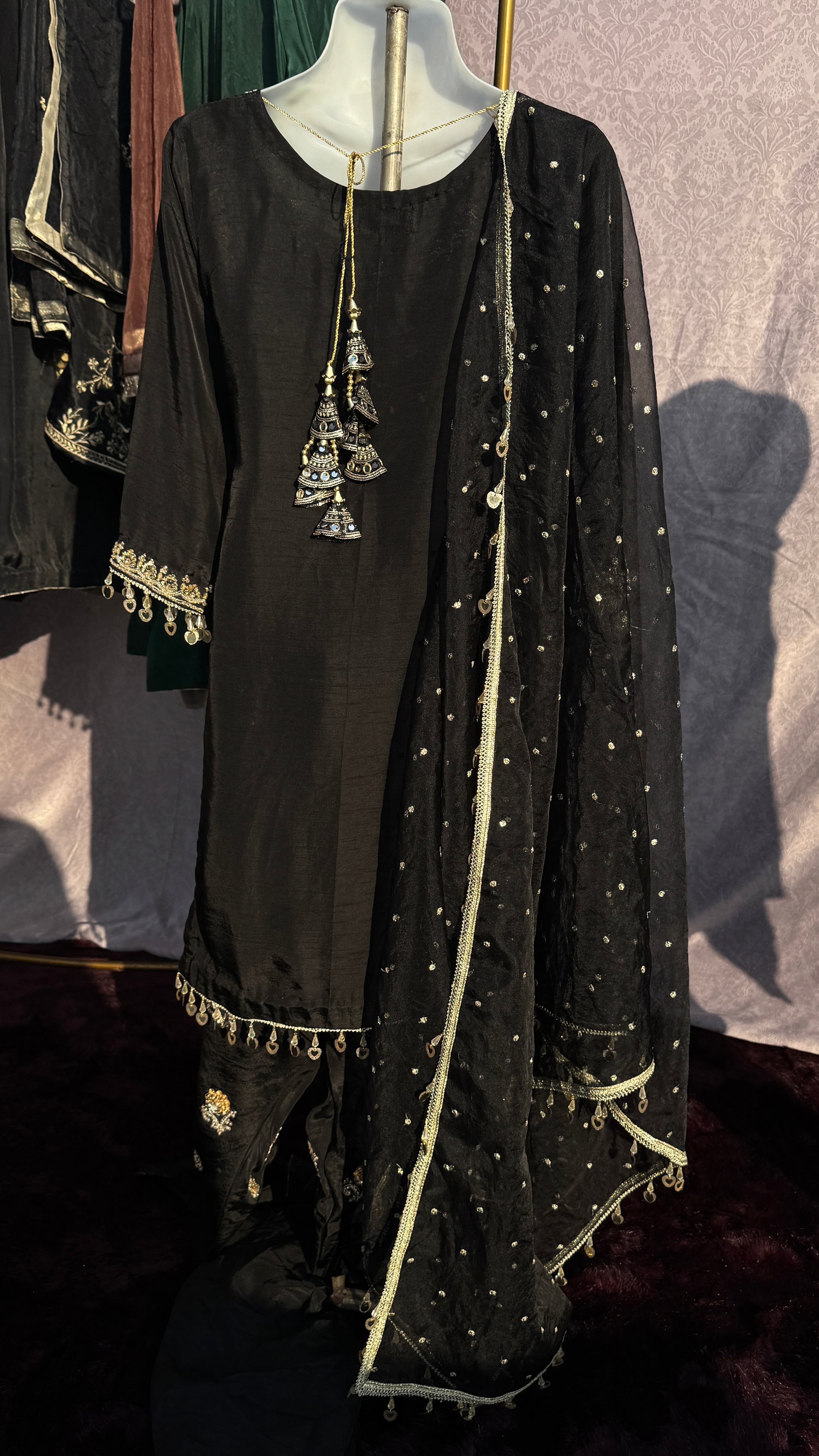 customize this dress in Black farshi shalwar suit, Perfect for This Eid, Events and festive occasions. π
