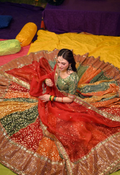 A vibrant multi-color lehenga adorned with intricate embellishments that shimmer beautifully with every twirl. The rich palette and detailed craftsmanship create a festive, graceful look perfect for weddings and special celebrations. ✨💃