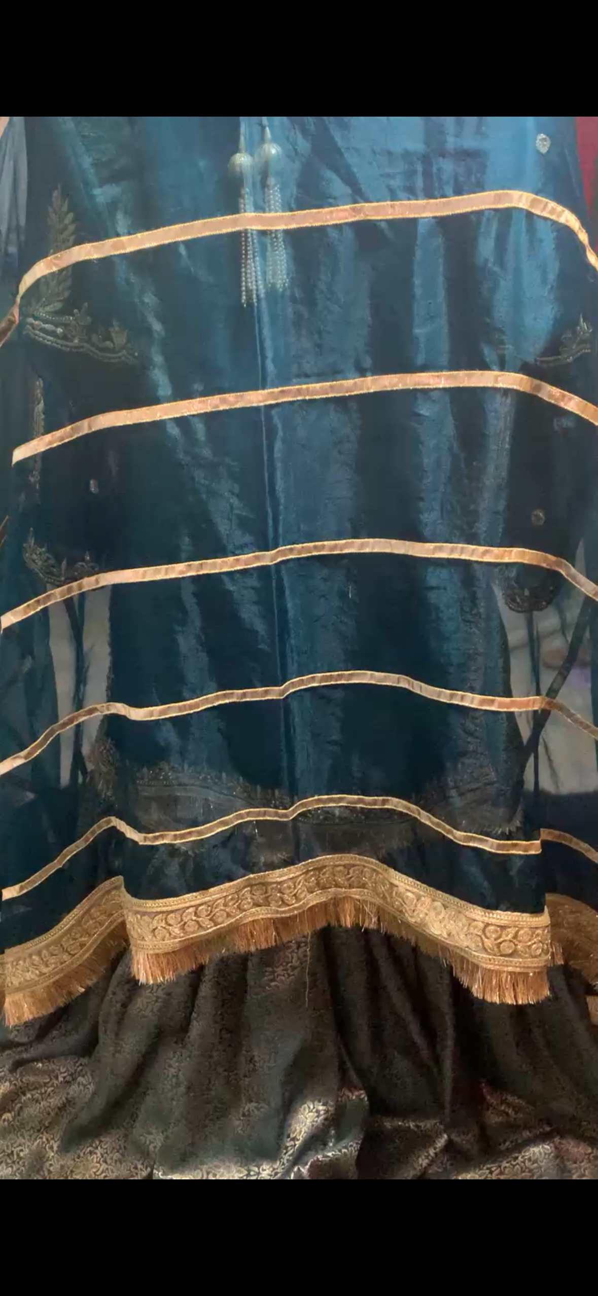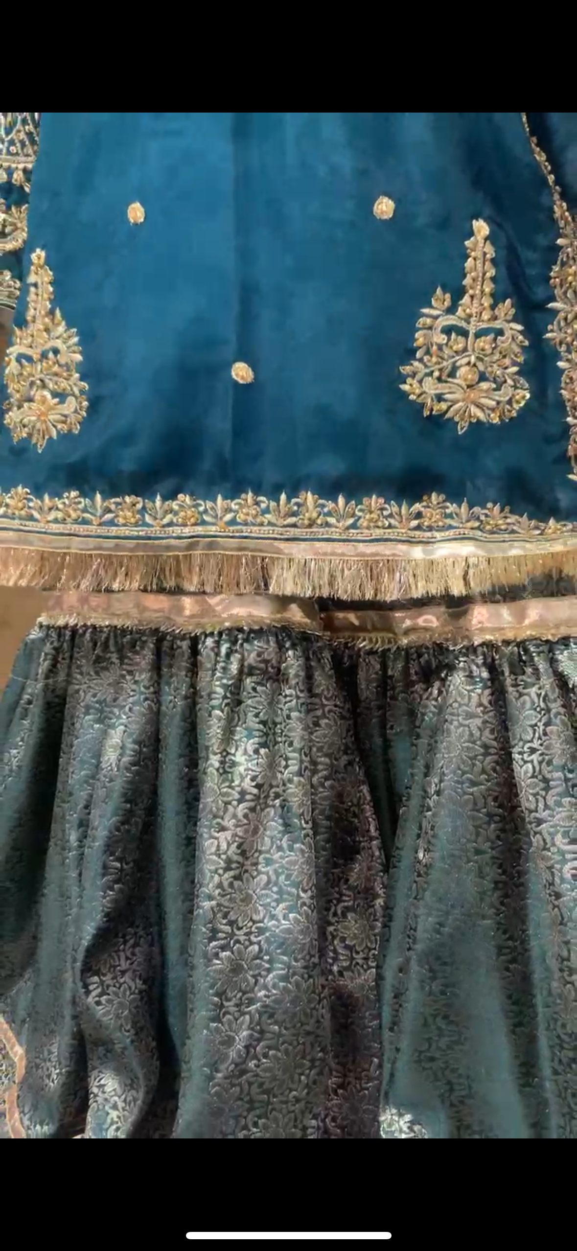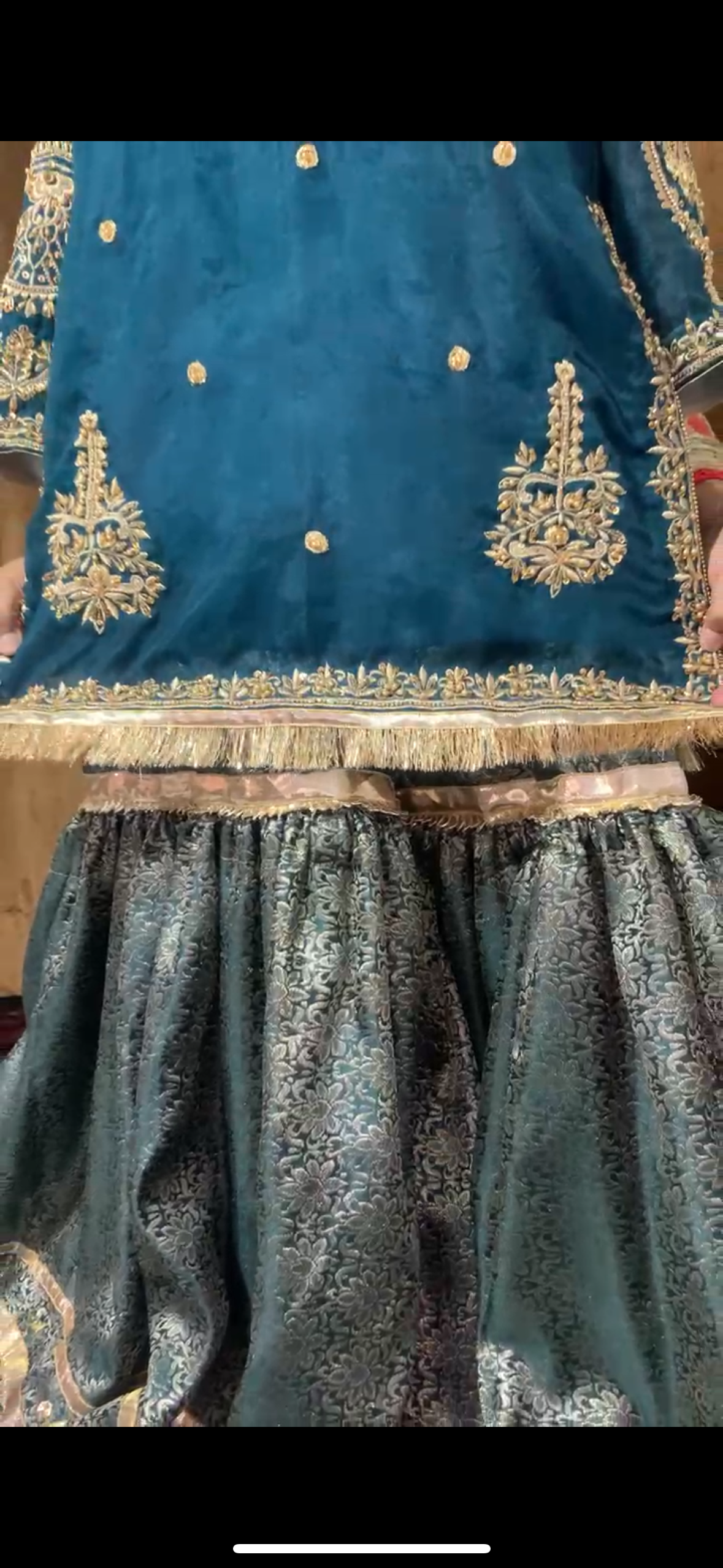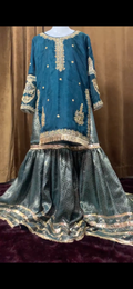 A perfect blend of tradition & elegance β featuring a farshi gharara with a short kameez, adorned with intricate hand embroidery & embellishments, paired with a gota work dupatta to complete the look. πΏπ