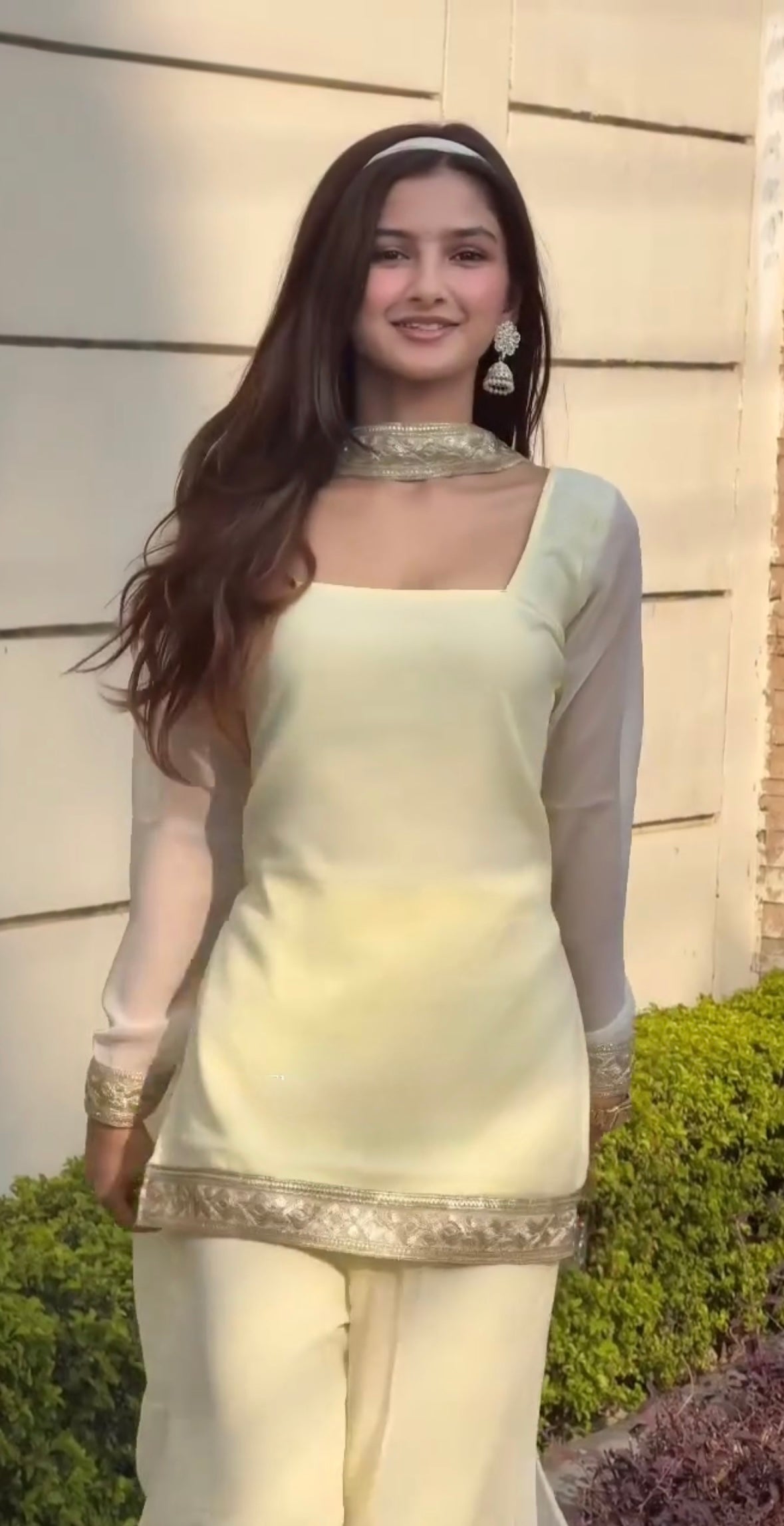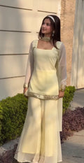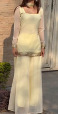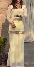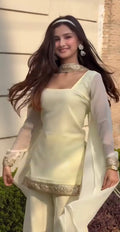 - Simple and elegant chiffon short shirt with plazo and duaptta with Embellished lace for casual and simple looks. 💛